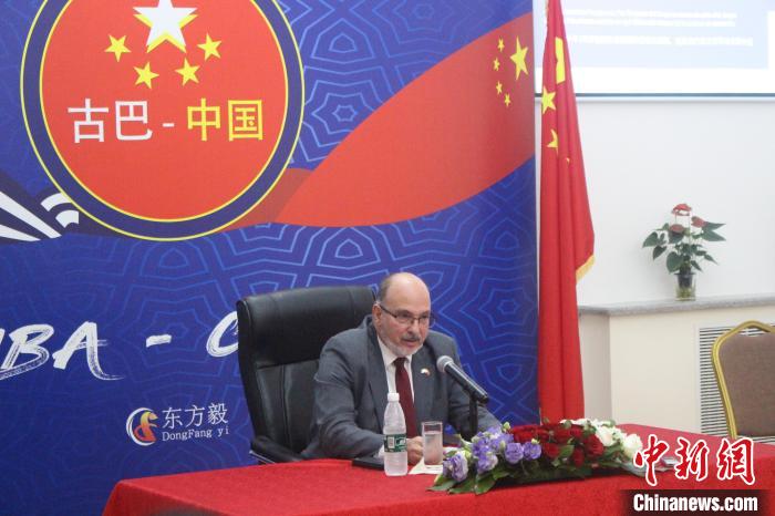 古巴駐華大使白詩(shī)德在古巴駐華大使館13日舉行的媒體見(jiàn)面會(huì)上發(fā)言?!√K婧欣 攝