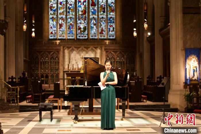 9月上旬,“東風(fēng)”系列三音樂會在倫敦舉辦,來自不同國家和地區(qū)的9位杰出歌唱家分別用中文為100多位觀眾獻(xiàn)上了20首詩詞及民族民間藝術(shù)歌曲。圖為活動主辦者、旅英青年歌唱家錢亦萱主持音樂會。 Lexie Lin 攝