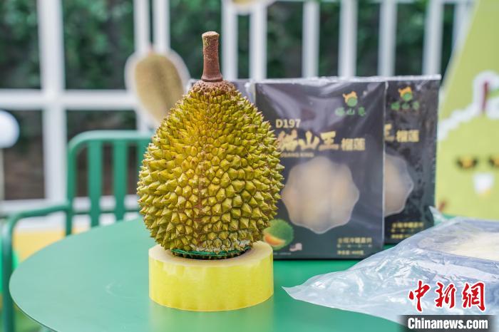 9月14日,馬來西亞“貓山王之鄉(xiāng)”——彭亨州勞勿縣的榴蓮亮相廣西南寧。 中新社記者 陳冠言 攝
