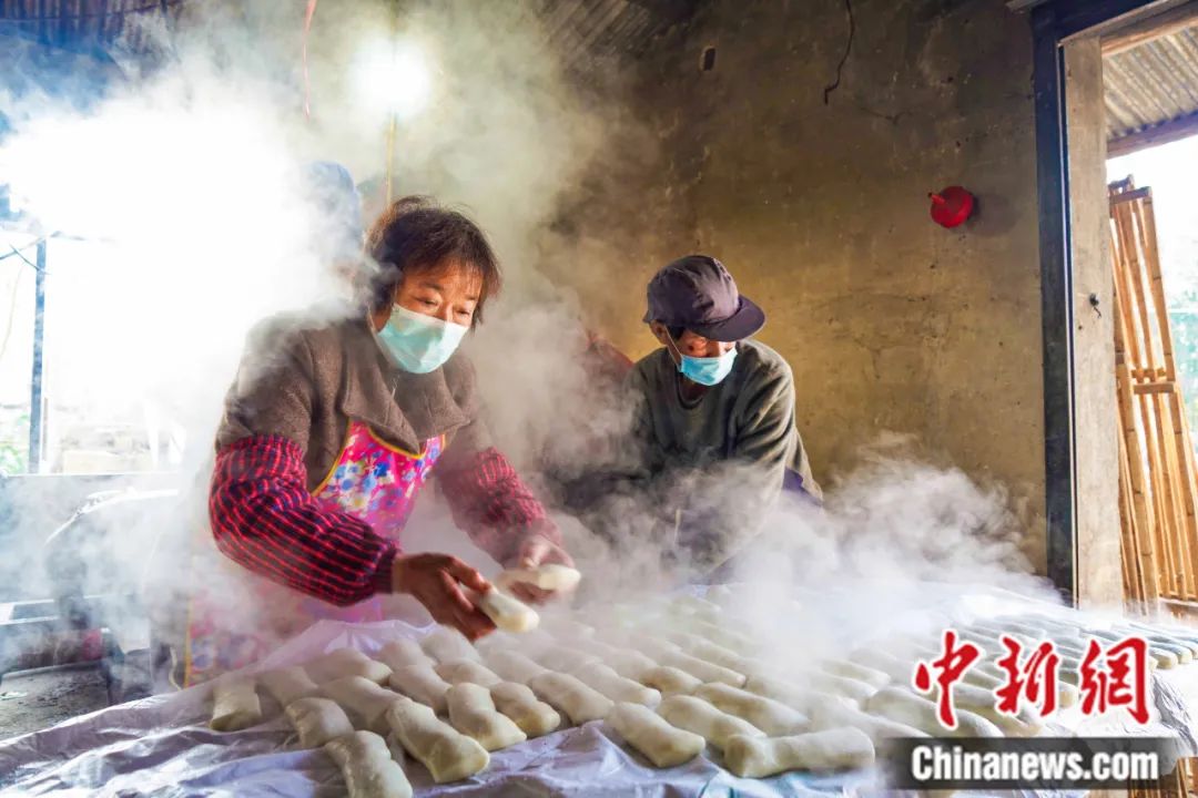 浙江省湖州市南潯區(qū)千金鎮(zhèn)朝陽村,村民們加工年糕。陸志鵬 攝