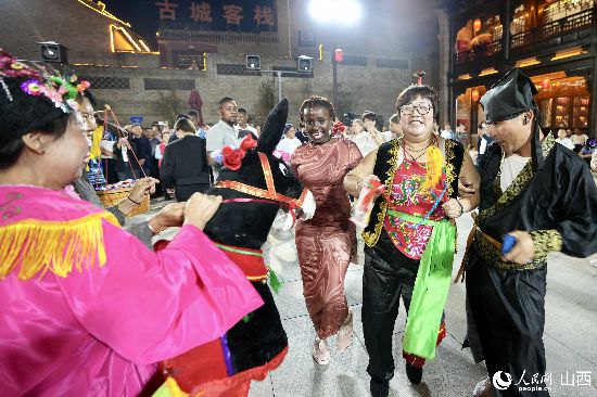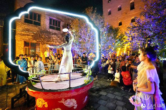 眼花繚亂的民俗表演,沉浸式的古城巡游,絢爛的城樓燈光秀,陶醉的狂歡……9月15日夜晚,在即將結(jié)束山西之行的前夜,2023“漢字緣”國際故事大會決賽的選手們夜游山西省晉城市陽城縣郭峪古城,于燈火闌珊處感受古城中的人間煙火。(人民網(wǎng) 盧鵬宇攝)