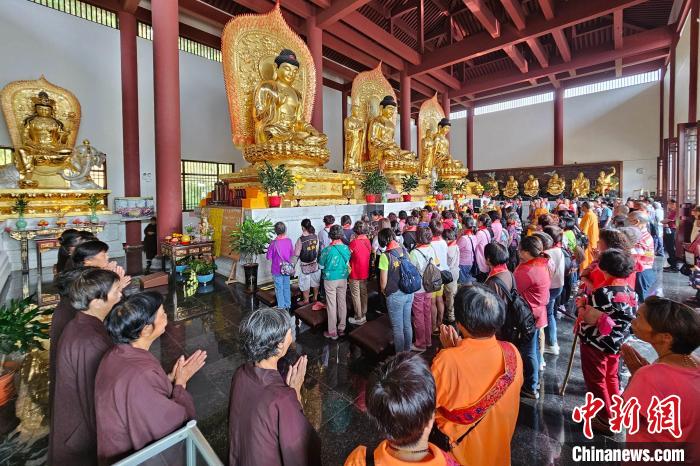 中新網(wǎng)福建南安9月18日電 (孫虹 林應(yīng)權(quán))臺(tái)灣新北市三峽區(qū)清水祖師信眾會(huì)一行105人,18日參訪福建南安英都西峰延壽院、翔云龍泉巖、省新部巖功德院等地,共話清水祖師信仰。