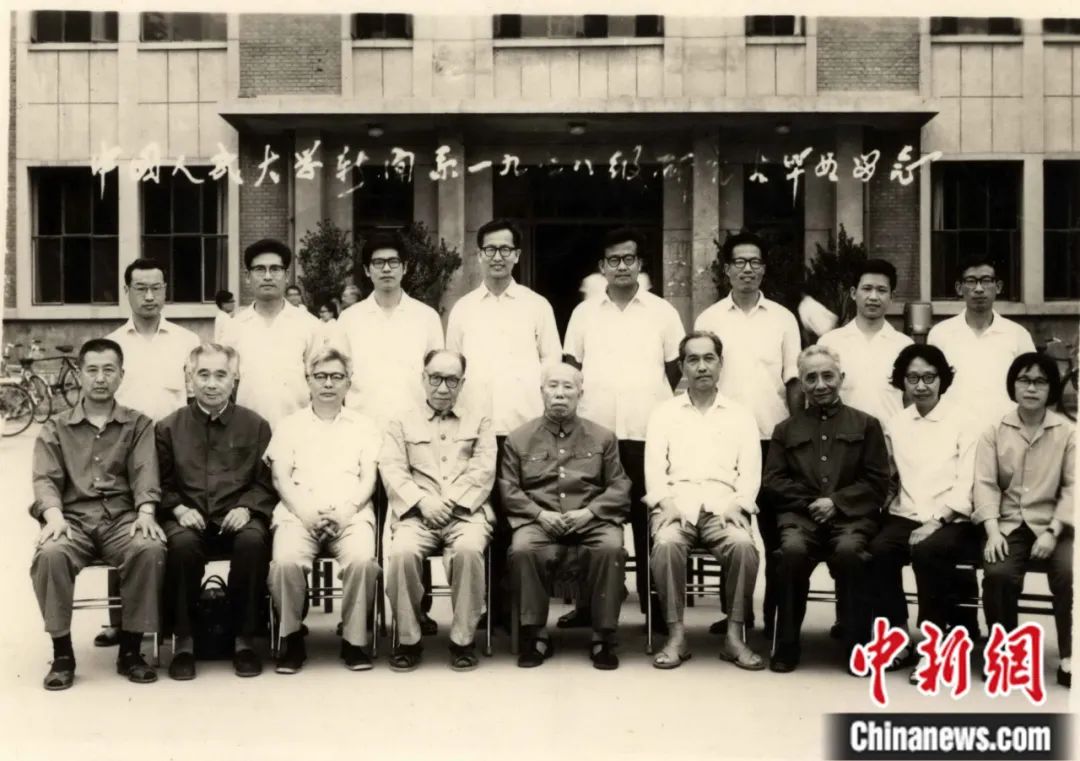 1981年,中國人民大學(xué)新聞系1978級研究生畢業(yè)留念。前排左三為方漢奇。中國人民大學(xué)新聞學(xué)院供圖