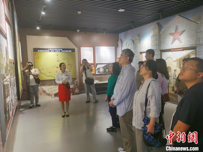 華媒代表們來到“半條被子的溫暖”專題陳列館參觀采訪。向一鵬 攝