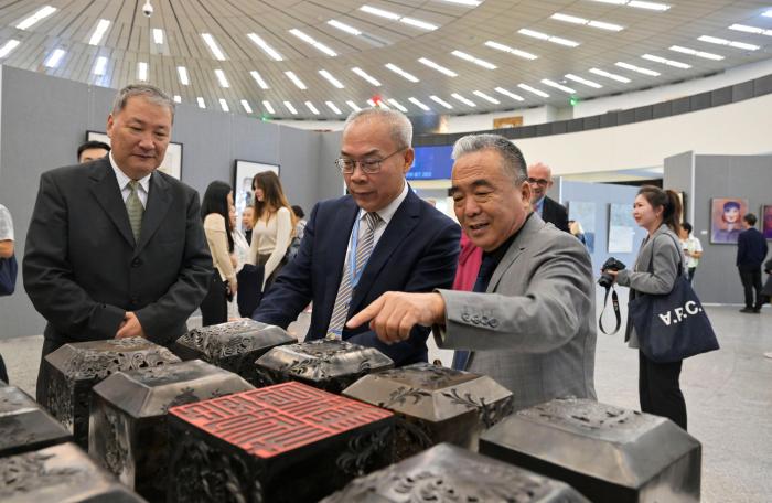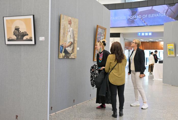 開幕式現(xiàn)場氣氛熱烈,各國外交官及國際職員們被參展藝術(shù)家的作品深深吸引,對中外藝術(shù)家通過當(dāng)代藝術(shù)角度,表達(dá)對中國式現(xiàn)代化應(yīng)對全球性挑戰(zhàn)的思考、傳播推進(jìn)全球發(fā)展事業(yè)和世界發(fā)展合作的意識予以高度評價(jià),對藝術(shù)家的精彩呈現(xiàn)表達(dá)贊嘆。