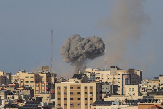 這是10月7日在加沙城拍攝的以色列軍隊(duì)空襲地面建筑造成的濃煙。新華社發(fā)(里澤克·阿卜杜勒賈瓦德攝)