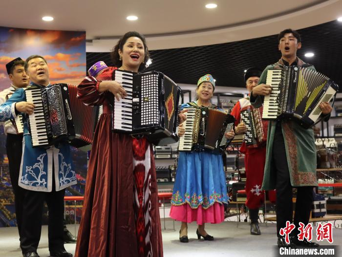 近日,記者走進(jìn)伊寧市六星街,由錫伯族、哈薩克族、俄羅斯族、漢族、維吾爾族等音樂(lè)愛(ài)好者組成的手風(fēng)琴樂(lè)隊(duì)正在表演。 中新社記者 薄雯雯 攝