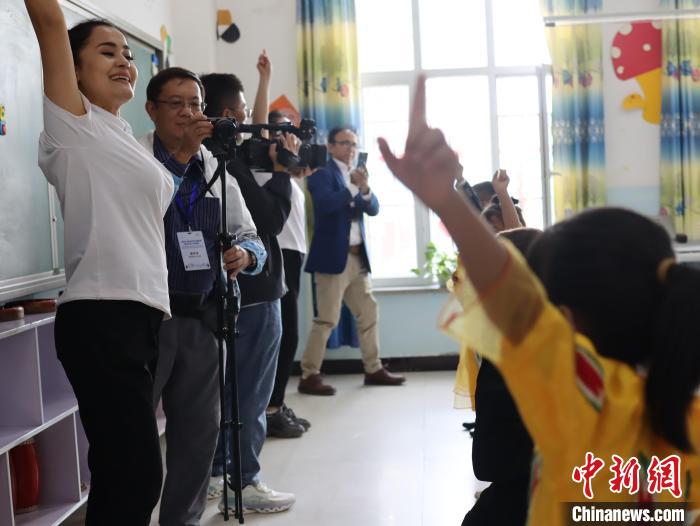 近日,泰國(guó)記者協(xié)會(huì)主席孟孔(左二)走進(jìn)喀什地區(qū)疏附縣吾庫(kù)薩克鎮(zhèn)七村學(xué)校參訪。 中新社記者 薄雯雯 攝