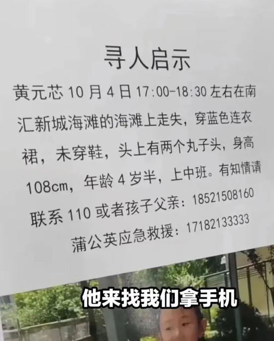 10月6日,上海市浦東區(qū)警方通過官微發(fā)布警情通報稱,女童父親在監(jiān)控中指出了自己和女童分開時的準確方位,民警據此在圖像中的近百人里發(fā)現了疑似女童的身影,其在原地等候約10分鐘后,向水邊走去,在水邊摔倒后消失在海浪中。浦東警方已協(xié)調上海海洋大學和海事大學的水文專家分析水流走向,以進一步開展搜尋工作。同時警方提醒廣大市民,如有相關線索及時與警方聯(lián)系。