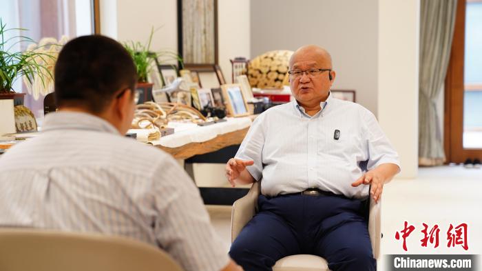 臺企敏實集團創(chuàng)始人、敏實控股集團董事會主席秦榮華近日在浙江嘉興接受中新社記者專訪?!≈行律缬浾?沈亦山 攝