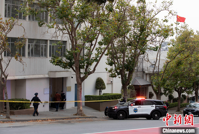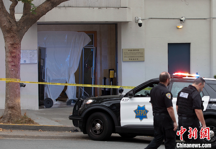 當(dāng)?shù)貢r間10月9日,美國舊金山警方在中國駐舊金山總領(lǐng)館附近對總領(lǐng)館館舍遭沖闖襲擊事件展開調(diào)查。中國駐舊金山總領(lǐng)館發(fā)言人表示,9日下午,有不明身份人員駕車暴力沖撞闖入中國駐舊金山總領(lǐng)館證件大廳,對工作人員及現(xiàn)場民眾生命安全構(gòu)成嚴(yán)重威脅,對總領(lǐng)館設(shè)施與財產(chǎn)造成嚴(yán)重破壞,性質(zhì)極其惡劣。 中新社記者 劉關(guān)關(guān) 攝
