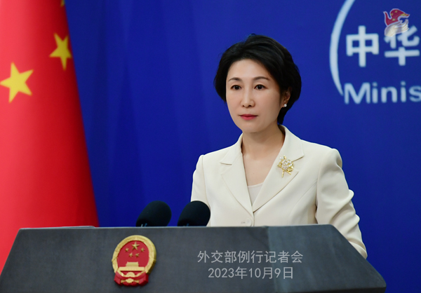 中新網北京10月9日電 (李京澤 謝雁冰)中國外交部發(fā)言人毛寧9日主持例行記者會。