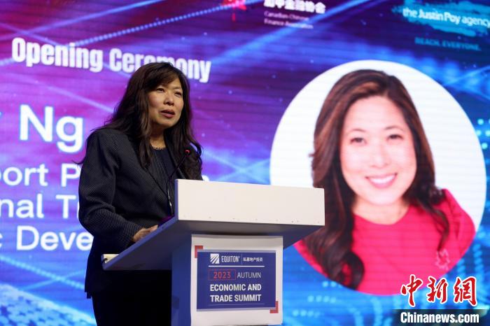 當(dāng)?shù)貢r(shí)間10月11日,加拿大多倫多,加拿大出口促進(jìn)、國(guó)際貿(mào)易和經(jīng)濟(jì)發(fā)展部長(zhǎng)伍鳳儀在多倫多出席當(dāng)日開(kāi)幕的2023秋季經(jīng)貿(mào)論壇時(shí)表示,加政府正繼續(xù)在全球各地商談、拓展貿(mào)易協(xié)議。記者 余瑞冬 攝