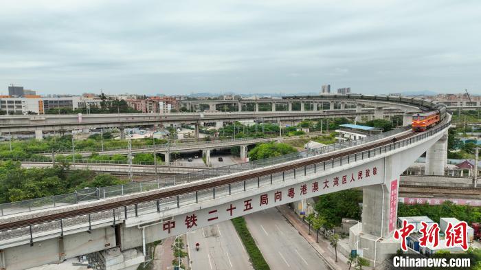 此次開通的江大聯(lián)絡(luò)線由廣東鐵投集團(tuán)所屬廣湛鐵路公司出資建設(shè)、中國鐵路設(shè)計集團(tuán)EPC總承包、中鐵二十五局承建。江大聯(lián)絡(luò)線全長約3.42公里,設(shè)計時速60公里,全線包含8處特殊結(jié)構(gòu),上跨廣珠鐵路、京廣三線、京廣上行線以及廣清高速公路,并下穿武廣高鐵,沿線地處巖溶發(fā)育區(qū)域,且臨近既有營業(yè)線施工長達(dá)2.7公里,涉及8個站場電務(wù)設(shè)備改造,施工環(huán)境復(fù)雜,施工難度、安全壓力巨大。