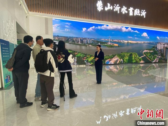 在臨沂市規(guī)劃展覽館,記者們了解了臨沂概況、發(fā)展成就和發(fā)展規(guī)劃藍(lán)圖。山東省委臺(tái)港澳辦供圖