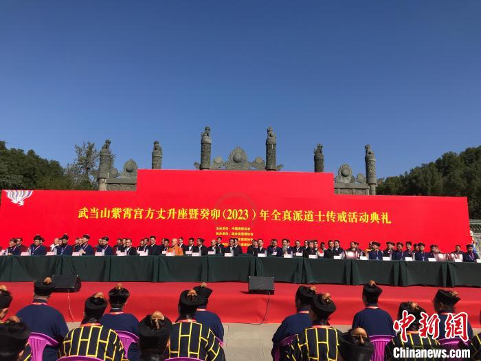 10月21日,武當(dāng)山紫霄宮方丈升座暨癸卯(2023)年全真派道士傳戒活動典禮在湖北省丹江口市靜樂宮舉行。中國道教協(xié)會會長李光富道長升座武當(dāng)山紫霄宮方丈。圖為活動現(xiàn)場。中新網(wǎng)記者 陳建新 攝