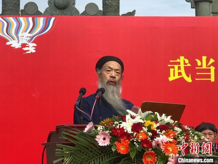10月21日,武當(dāng)山紫霄宮方丈升座暨癸卯(2023)年全真派道士傳戒活動典禮在湖北省丹江口市靜樂宮舉行。中國道教協(xié)會會長李光富道長升座武當(dāng)山紫霄宮方丈。圖為李光富致答謝辭。中新網(wǎng)記者 陳建新 攝