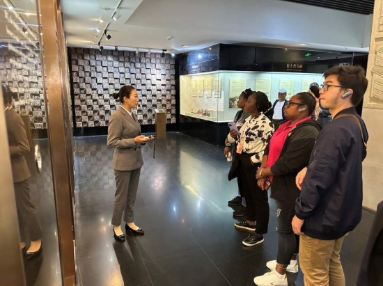 10月23日,在中國(guó)酒文化城,2023“一帶一路”媒體合作論壇聯(lián)合采訪(fǎng)團(tuán)團(tuán)員認(rèn)真聆聽(tīng)講解。本報(bào)記者 劉書(shū)文攝