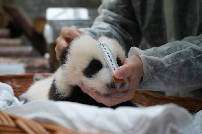園方表示,熊貓寶寶的體重已經(jīng)達(dá)到3428克,與之前的體檢結(jié)果相比,身長(zhǎng)增加了7厘米,尾巴的增長(zhǎng)速度有所放緩,長(zhǎng)度依然保持在6.8厘米。