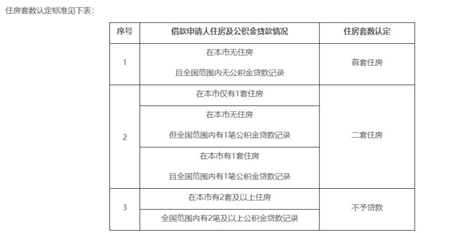 借款申請人在北京市有1套住房的;或在北京市無住房但全國范圍內(nèi)有1筆公積金貸款記錄的;或在北京市有1套住房且全國范圍內(nèi)有1筆公積金貸款記錄的,執(zhí)行二套住房公積金貸款政策。