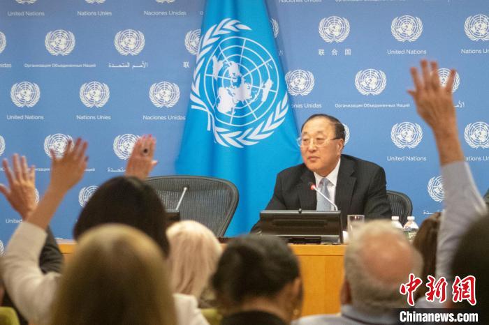 當(dāng)?shù)貢r(shí)間11月1日,中國(guó)常駐聯(lián)合國(guó)代表張軍在紐約聯(lián)合國(guó)總部向媒體吹風(fēng),介紹中方擔(dān)任安理會(huì)輪值主席的工作考慮。圖為現(xiàn)場(chǎng)媒體舉手提問(wèn)。中新社記者 王帆 攝