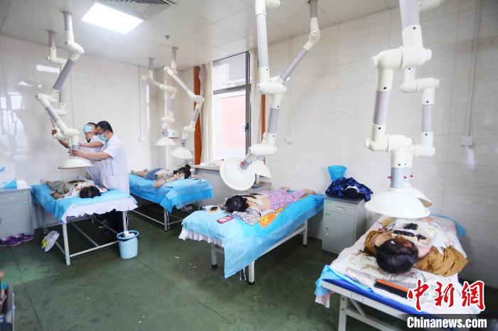 2021年8月19日,甘肅中醫(yī)藥大學附屬醫(yī)院鄭氏針灸科室內(nèi),醫(yī)師為患者做敦煌特色灸。(資料圖)高展 攝