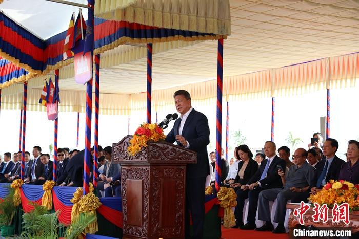 圖為柬埔寨副首相孫占托在慶典儀式上致辭。 中新社發(fā) 黎海月 攝
