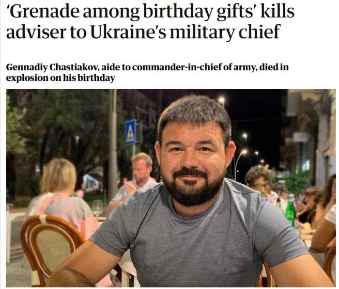 據(jù)報(bào)道,當(dāng)天,烏克蘭武裝部隊(duì)總司令瓦列里·扎盧日內(nèi)在社交媒體Telegram上發(fā)文稱(chēng),“很不幸地,我的助手兼好友根納季·查斯季亞科夫少校(Gennadiy Chastyakov)今天在他的生日當(dāng)天身亡?!?/p>