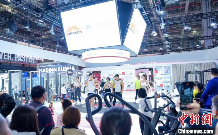 11月7日,第六屆進(jìn)博會(huì)上,臺(tái)資企業(yè)喬山健康科技(上海)有限公司在展臺(tái)舉行活動(dòng)。(喬山集團(tuán)供圖)
