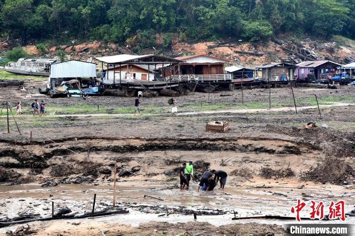巴西亞馬孫持續(xù)干旱,亞馬孫河多條支流航運物流停擺。圖為10月16日,巴西亞馬孫河支流的大衛(wèi)碼頭,當?shù)卣汕踩藛T在疏浚河道。中新社記者 林春茵 攝