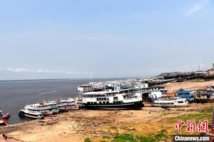 目前,當?shù)睾竭\主力的內格羅河、馬代拉河、塔帕若斯河等亞馬孫河主要支流的水位,都已處于歷史最低水平。在馬瑙斯多個港口,記者看到多艘船只擱淺,大型貨運船只泊滿碼頭按兵不動。