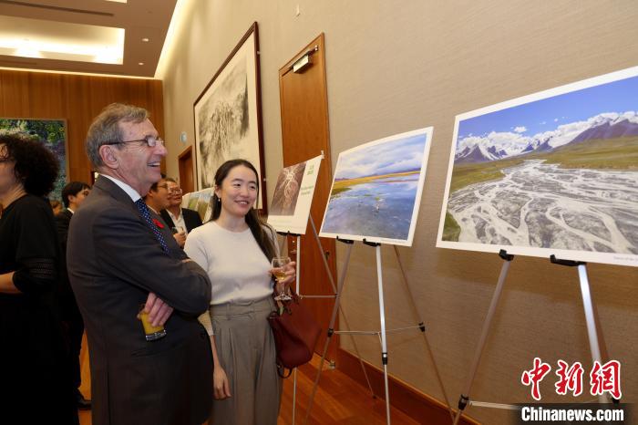 當(dāng)?shù)貢r(shí)間11月8日,中國(guó)駐加拿大使館舉辦國(guó)家公園圖片展暨招待會(huì)。圖為與會(huì)嘉賓觀(guān)看三江源國(guó)家公園照片。 中新社記者 余瑞冬 攝