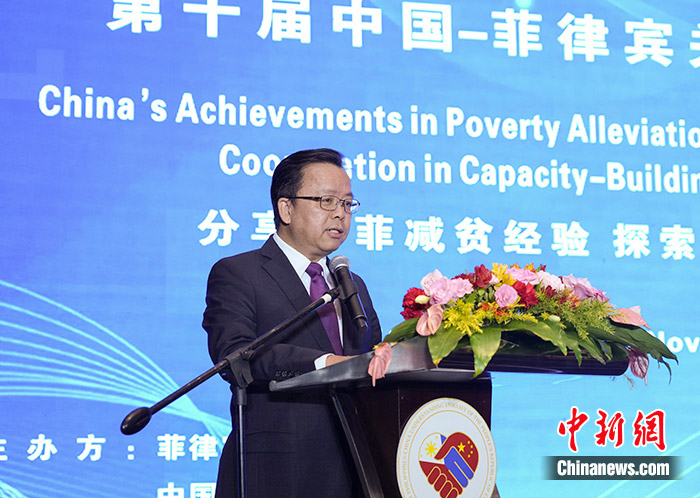 當(dāng)天,由中國駐菲律賓使館和菲律賓中國了解協(xié)會聯(lián)合舉辦的第十屆“中菲關(guān)系馬尼拉論壇”在馬尼拉舉行,主題為“分享中菲減貧經(jīng)驗,探索兩國減貧合作路徑”。