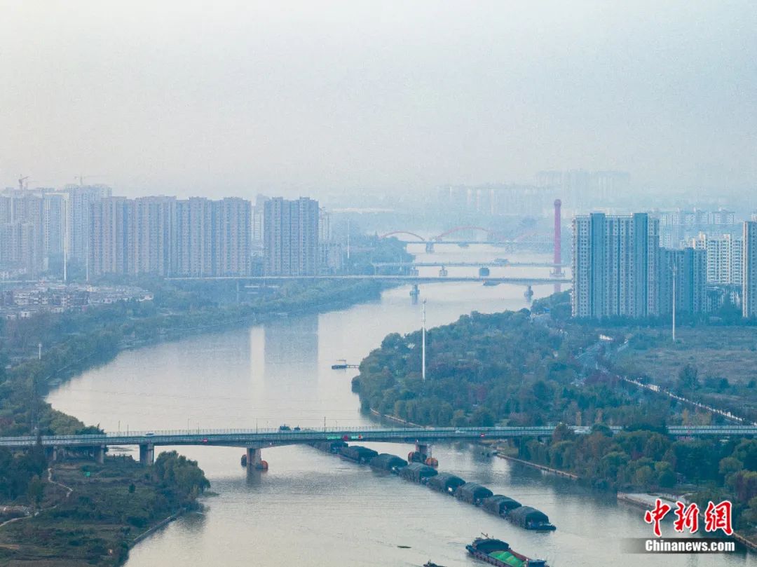 2023年10月29日清晨,貨船行駛在京杭大運(yùn)河江蘇省宿遷段。柴軍委 攝