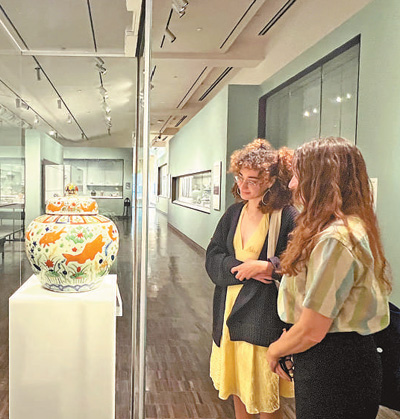 美國舊金山亞洲藝術(shù)博物館近期舉辦中國瓷器展覽。圖為當(dāng)?shù)貢r間11月13日,參觀者在欣賞藝術(shù)品。