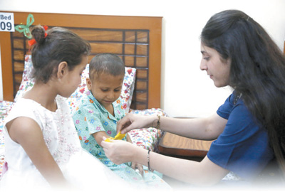 考慮到兒童病患的特殊性,“小家”一直將孩子們的心理疏導(dǎo)作為志愿工作的重點(diǎn)?!昂⒆觽兊男睦頎顟B(tài)很重要?!薄靶〖摇卑头截?fù)責(zé)人蘇比婭·阿德南說。阿德南有30多年的兒童公益服務(wù)經(jīng)歷,在她和巴中兩國同事的引導(dǎo)下,孩子們相互鼓勵(lì)支持,在閑暇時(shí)制作各種手工藝品布置“小家”。