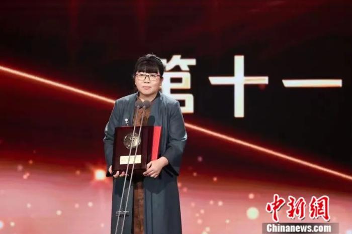 2023年11月19日晚,喬葉獲頒第十一屆茅盾文學(xué)獎(jiǎng)。浙江衛(wèi)視供圖
