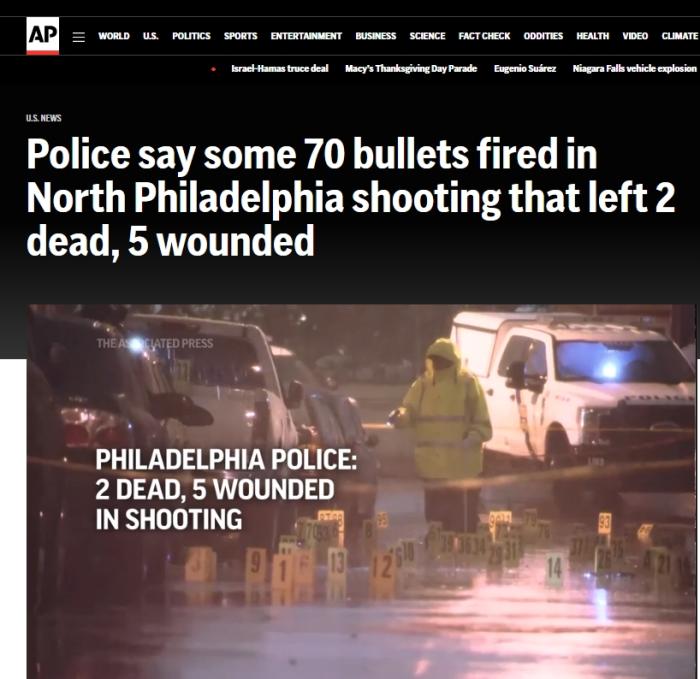 據(jù)報道,槍擊事件中的兩位死者均來自費城,年齡分別為31歲和38歲。兩人均身受多處槍傷,在送入醫(yī)院后搶救無效死亡。