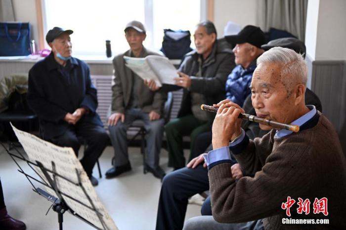 圖為11月27日,甘肅省蘭州市七里河區(qū)建蘭路街道吳家園社區(qū)養(yǎng)老服務中心內,老人們在社區(qū)食堂就餐后進行合唱練習。 中新社記者 九美旦增 攝