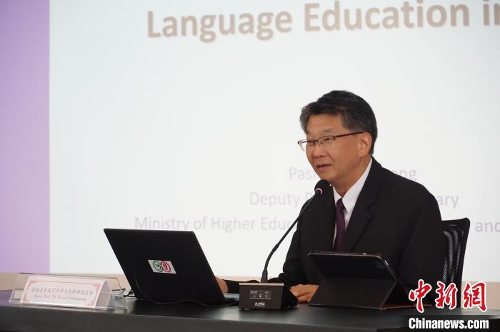 泰國(guó)高等教育和科研與創(chuàng)新部常務(wù)副次長(zhǎng)帕斯·洛提拉蓬作主旨報(bào)告。學(xué)校供圖