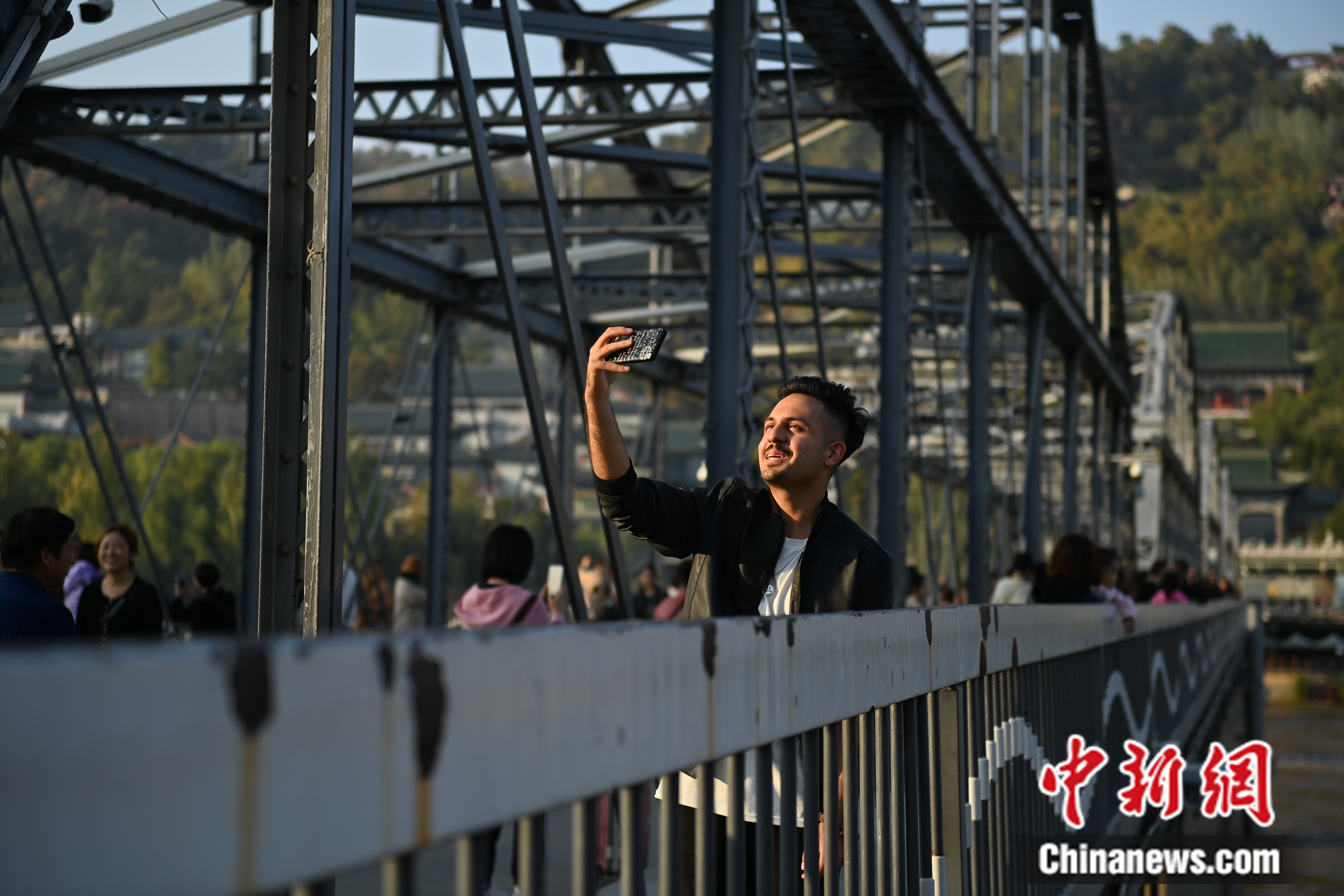 “這里是蘭州的著名景點(diǎn)——中山橋,有一百多年的歷史,到現(xiàn)在還能正常通行呢?!迸说显谔m州地標(biāo)性建筑“蘭州黃河鐵橋”上,一邊行走,一邊用手機(jī)記錄。他將自己在中國(guó)旅行中遇到的美景、見聞也上傳到社交賬號(hào)平臺(tái)上,希望能讓更多人能感受到中國(guó)的魅力。