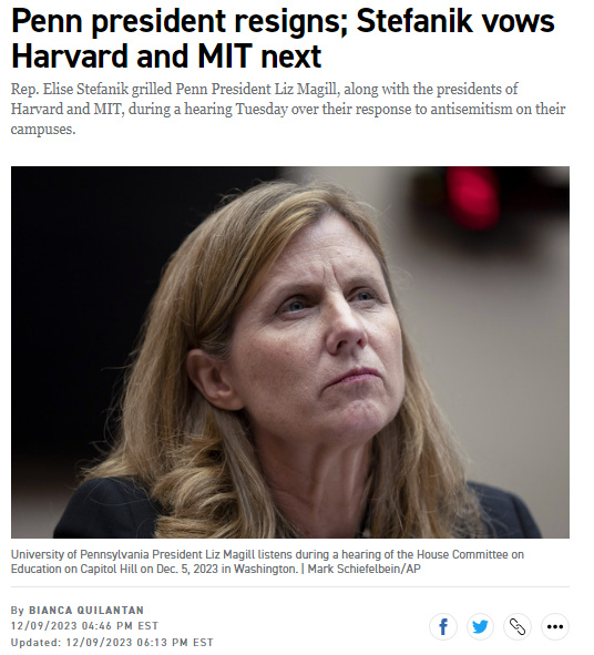 報道指出,馬吉爾是美國首個因“反猶爭議”辭職的高校校長。