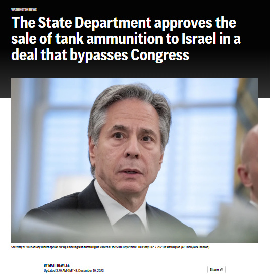 報道還稱,美國國務院此舉意味著,此次對以軍售將繞過國會對對外軍售的審查要求。當美國政府認為急需交付武器而無需等待立法者批準時,會繞過國會直接動用緊急授權(quán),不過這種舉動是罕見的。
