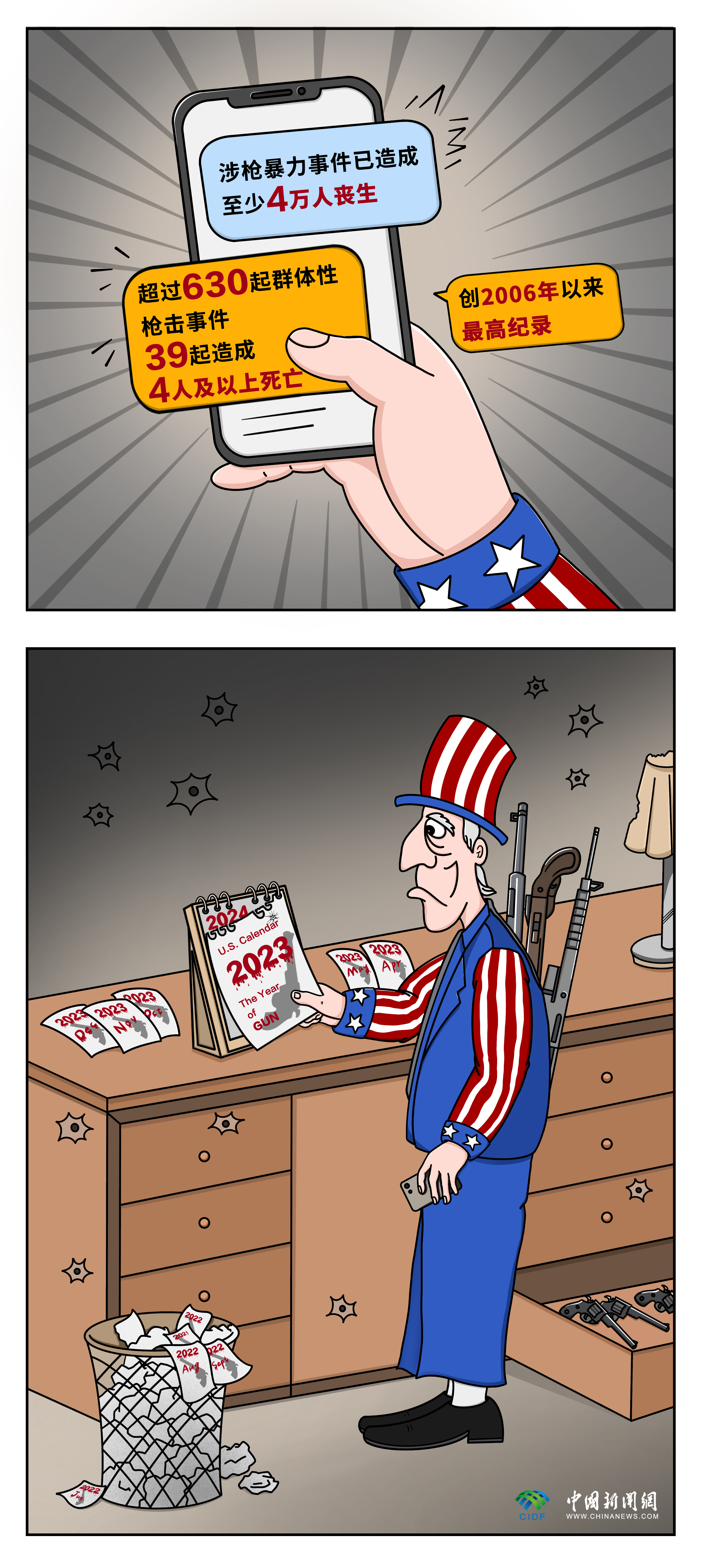 2023年漸入尾聲,此起彼伏的槍聲卻從未停止,美國人再次度過充滿血腥與不安的一年。得克薩斯州,華盛頓州,內(nèi)華達州……一周內(nèi)接連發(fā)生的槍擊事件將美國推向了又一個“可怕的里程碑”。