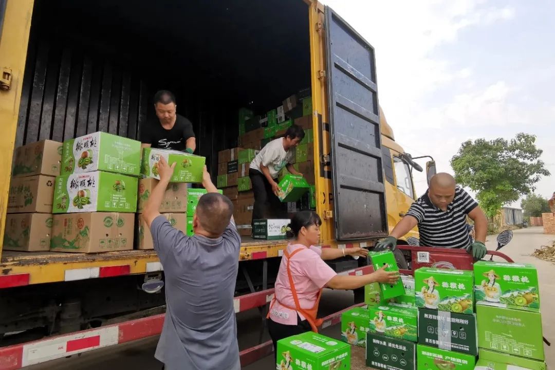 圖為工人們正在將獼猴桃裝車運(yùn)輸。武功縣融媒體中心 供圖