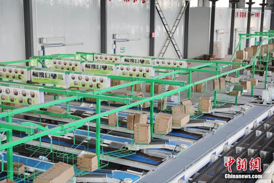 圖為工廠內(nèi)的獼猴桃裝箱流水線。石芙蓉 攝