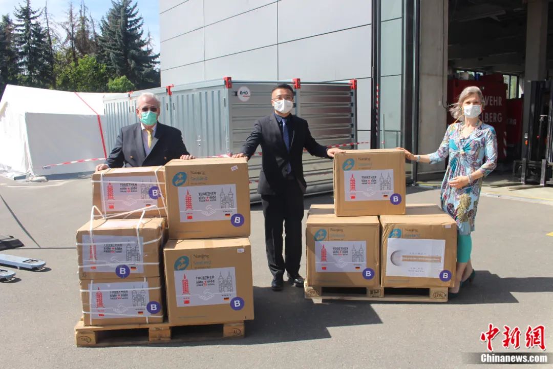 中國(guó)駐德大使館接到來(lái)信后緊急調(diào)集物資,中國(guó)各界紛紛伸出援手——浙江一家醫(yī)藥企業(yè)當(dāng)即決定免費(fèi)贈(zèng)藥,南京市政府同時(shí)籌得幾萬(wàn)只口罩和上百套防護(hù)服,通過(guò)中國(guó)專機(jī)運(yùn)往德國(guó)。2020年4月21日,中國(guó)駐德大使館工作人員自柏林驅(qū)車(chē)700公里,將物資交到了海德堡市政府和托馬斯·拉貝的手中。