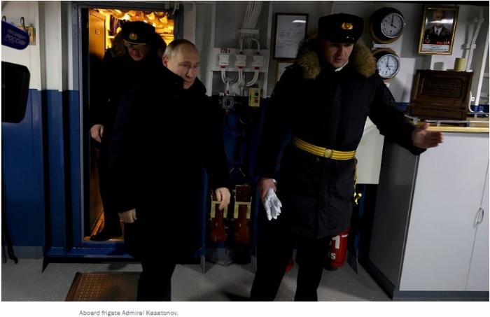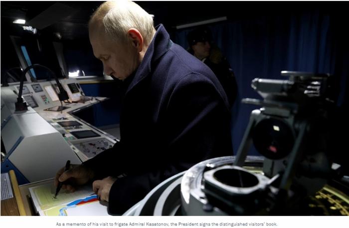 據(jù)塔斯社報道,普京在貴賓簿上寫道,“有這樣的水兵、這樣的艦艇和這樣的武器,俄羅斯會感到安全”。