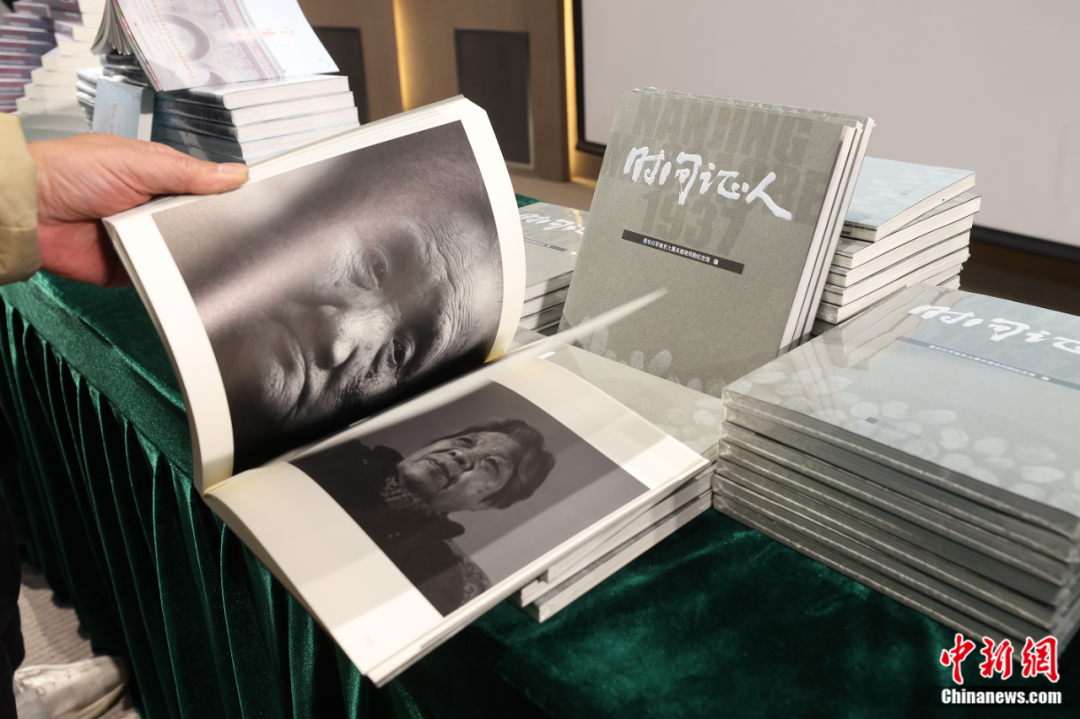 2023年12月6日,侵華日軍南京大屠殺遇難同胞紀(jì)念館聯(lián)合各界在南京舉行“2023年度南京大屠殺史研究新書發(fā)布會”,十余本新書集中首發(fā)。圖為與會人士翻閱《時間證人》一書。泱波 攝
