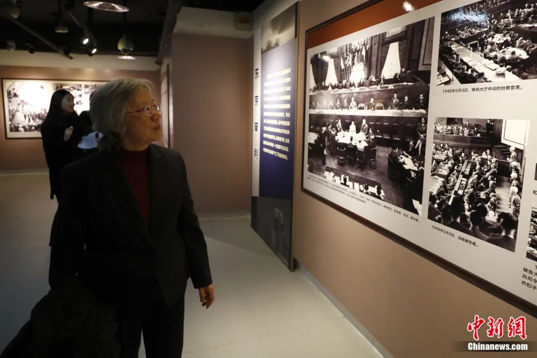 2019年12月13日,《正義的審判——紀(jì)念東京審判宣判71周年專題展》在中國人民抗日戰(zhàn)爭紀(jì)念館開幕,270余幅珍貴歷史照片再現(xiàn)“東京審判”。圖為遠(yuǎn)東國際軍事法庭中國法官梅汝璈之女梅小侃參觀專題展。富田 攝
